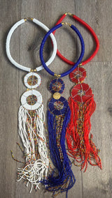 Make a statement with these beautiful beaded neckpieces from Kumbai. Handcrafted from natural materials, each piece is unique and adds a pop of color to any outfit. Handcrafted using natural materials, comes in a variety beautiful shades, and one size fits all that is perfect as a fashion accessory or for special occasions.