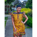 Introducing the Sarudzai, a stunning dress designed to make a statement this summer. With its bright and bold colors, this vibrant piece is perfect for any occasion, from beach outings to garden parties.